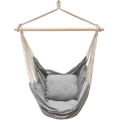 - KINDER HÄNGESESSEL AB 3 JAHREN – Indoor und outdoor, für Kinderzimmer oder Garten: Strapazierfähige Hängeschaukel aus 100% Baumwolle, dazu 2 gemütliche Kissen zum Wenden – superschick in Grau und Blau.