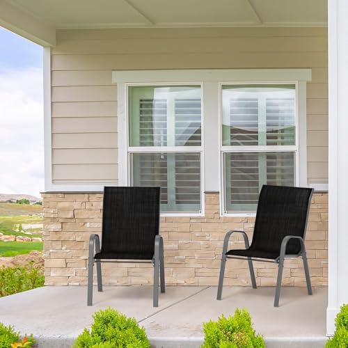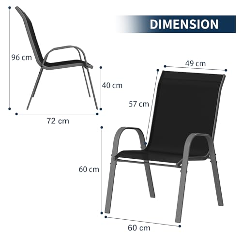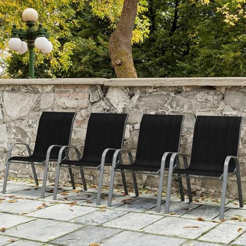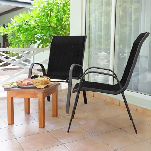Amopatio 4er Set Gartenstühle Stapelbar, Hochlehner Stapelstühle aus Textilene und Metallgestell, Terrassenstühle Balkonstuhl mit Armlehnen Wetterfest, 60 x 72 x 96 cm, Schwarz