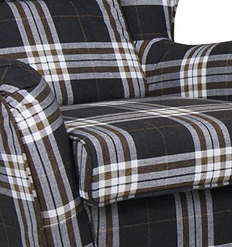 B-famous Ohrensessel mit Hocker Chris Strukturstoff braun kariert