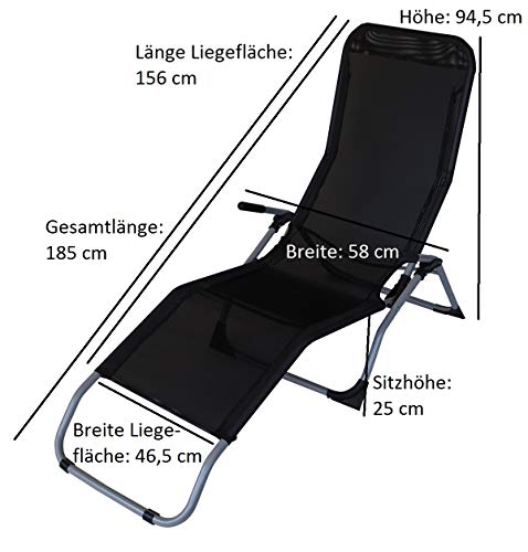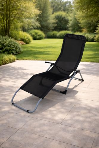 DEGAMO Kippliege Saunaliege Relaxliege Sylt, Stahl grau + Textilgewebe schwarz, klappbar, für Innen + Außen (1)