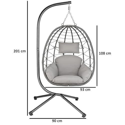 HinHocker Hängesessel mit Gestell | Grau | Hängeschaukel für Indoor und Outdoor | Inkl. Kissen und Auflagepolster | Balkon Hängesessel Outdoor, Gartenschaukel, Schaukelstuhl, Hängekorb