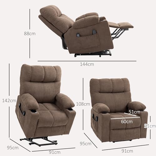 HOMCOM Fernsehsessel mit Aufstehhilfe Elektrisch, Relaxsessel mit Liegefunktion, Wärme- und Massagefunktion, TV-Sessel mit Federsystem, Fernbedienung, Seitentasche und Becherhalter Braun