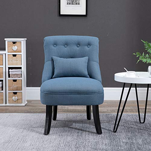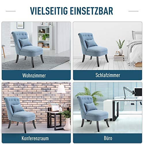 HOMCOM Sessel Wohnzimmer Relaxsessel Loungesessel Ruhesessel mit Rückenkissen, Holzbeine, Lesesessel mit Leinenoptik, Polstersessel für Schlafzimmer, Blau