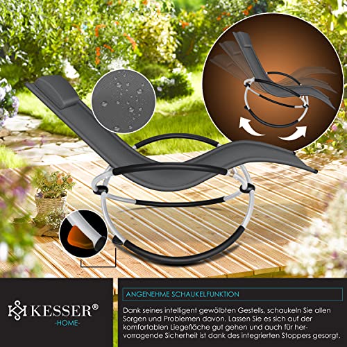 KESSER® Relaxliege Liegestuhl | Gartenliege Sonnenliege | Gartenstuhl | Klappstuhl faltbar | Schwungliege | Schaukelsessel | ergonomische Relaxsessel | wetterfest | 180 kg Belastung Anthrazit