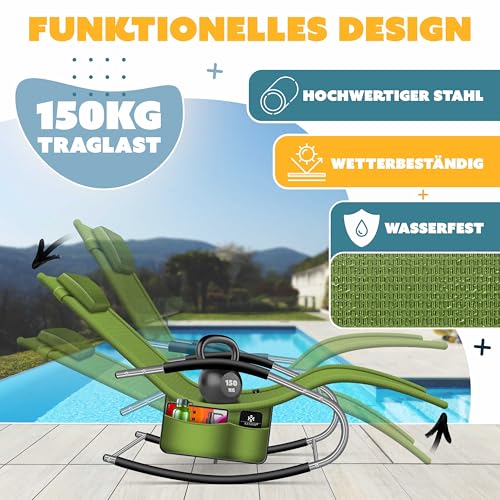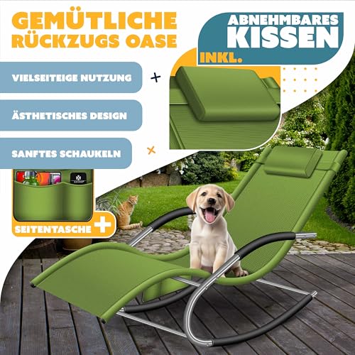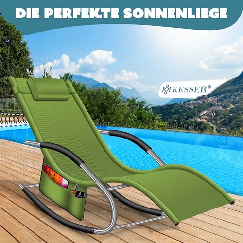 KESSER® Sonnenliege Relaxliege Schwungliege | Gartenliege | Gartenstuhl | Liegestuhl | Schaukelsessel | ergonomische Relaxsessel | Kopfkissen | wetterfest | 150 kg Belastung | Khaki