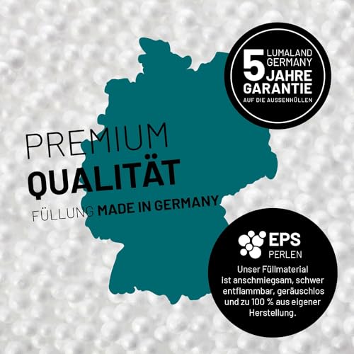 - eigens für Lumaland hergestellten EPS Füllung – luftige Perlenfüllung