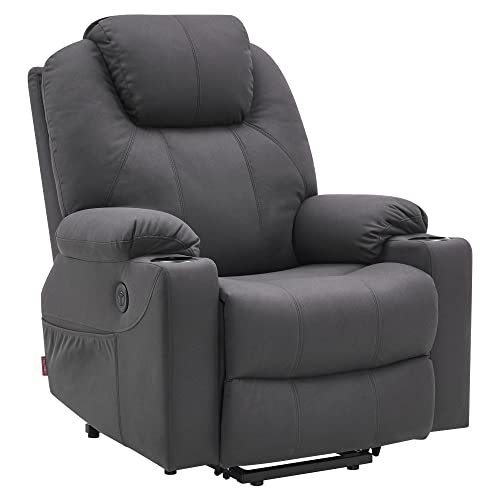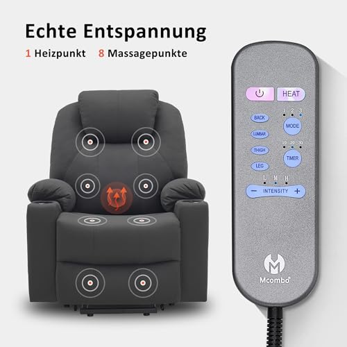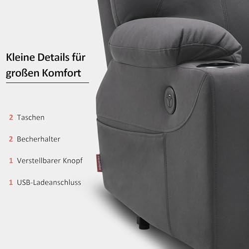 M MCombo Fernsehsessel mit Aufstehhilfe Elektrisch, Relaxsessel mit Liegefunktion bis 140°, Massagesessel mit Wärmefunktion, Knopf & Fernbedienung Verstellbar, mit USB, 7040 (Mikrofaser, Dunkelgrau)