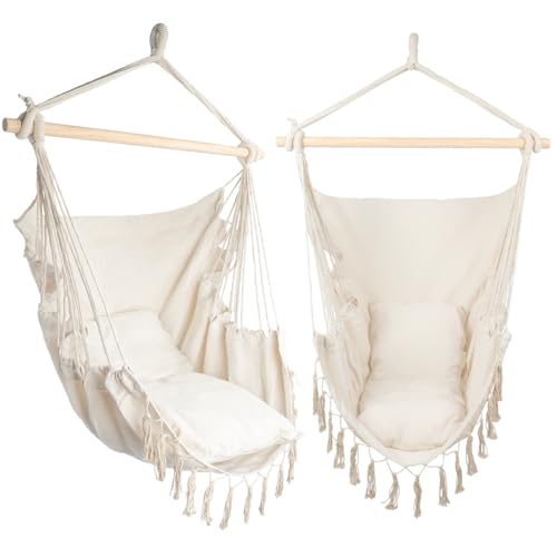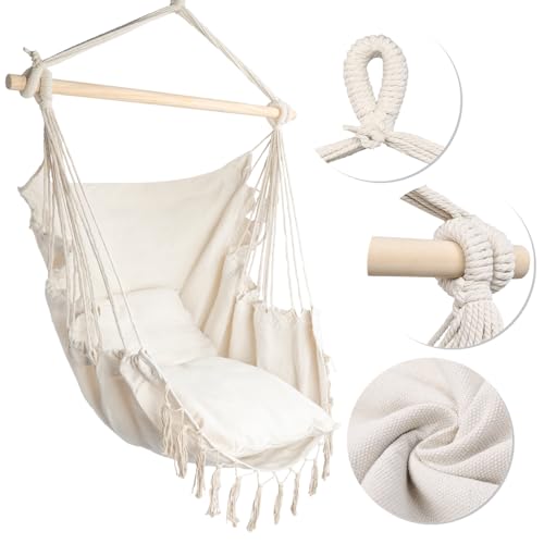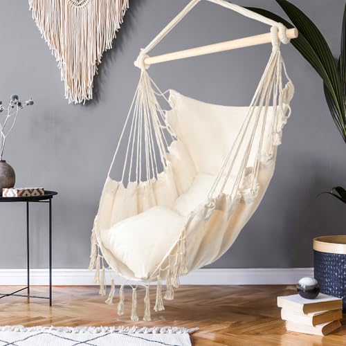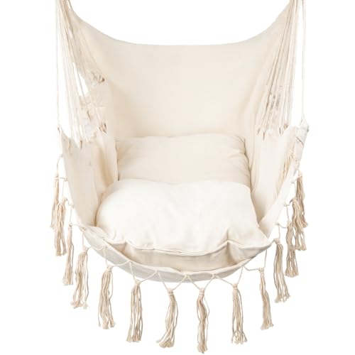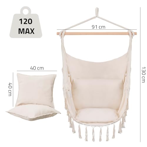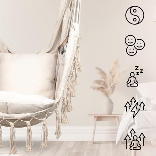 MalTec Hängesessel Gartensessel Brasilianischer Cocoon Stuhl mit Kissen Hängestuhl Indoor & Outdoor BEIGE Sessel zum Aufhängen bis 120kg belastbar