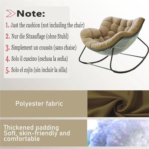 - Schaukelstuhl Kissen Größe: 120 x 100 x 10cm dick(Nur Kissen, Stühle nicht enthalten). Diese Innen Stuhl Kissen kann als Terrasse Stuhl Kissen, Schaukelstuhl Kissen, Garten Stuhl Kissen, Esszimmer Stuhl Kissen, Küche Stuhl Kissen, Büro Stuhl Kissen, Studie Stuhl Kissen und mehr verwendet werden. (Produkt umfasst nur Sitzkissen, Rahmen ist nicht enthalten)