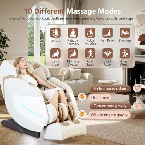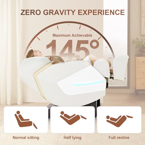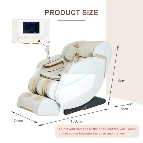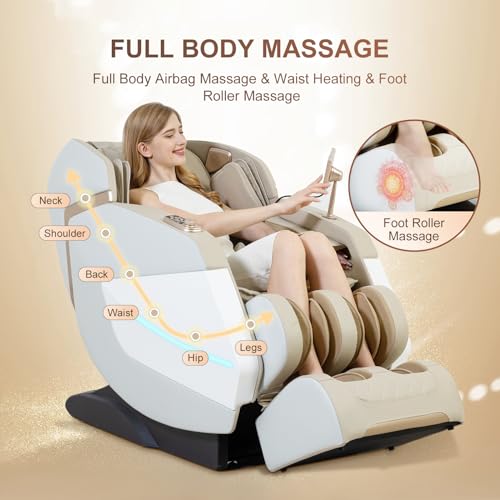 Relaxora Massagesessel 3D Zero Gravity SL Track Ganzkörper-Shiatsu-Massage mit Fußrollen Bluetooth Wärmetherapie Wadenknetmassage Airbag-Massage Stretch (Beige)