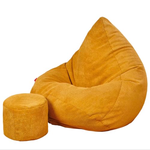 Slevobox Sitzsack mit Hocker Senfgelb 95x95x120 cm – XXL Sitzsack Erwachsene mit Füllung – Schlafzimmer und Wohnzimmer Möbel – Samt Indoor Sitzsäcke – Bean Bag – Lounge Sessel