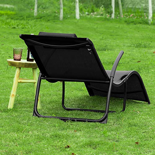 SoBuy Sonnenliege klappbar Gartenliege Relaxstuhl Liegestuhl mit Kissen Schwarz für Gärten, Höfe, Strände, Balkone Freizeitmöbel Belastbarkeit 150 kg BHT ca. 60x69x173cm OGS45-SCH