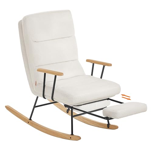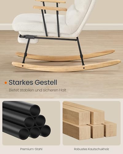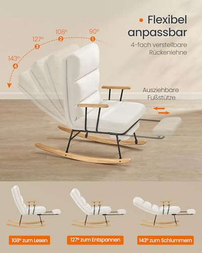SONGMICS HOME Schaukelstuhl, Füße aus Kautschukholz, Schaukelsessel, Fleece Oberfläche, 4-Fach verstellbare Rückenlehne, bis 160 kg belastbar, für Schlafzimmer, Wohnzimmer, cremeweiß LYY016W01