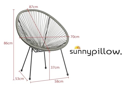 sunnypillow Acapulco Gartenstuhl – gemütlicher Loungesessel für Wohnzimmer, Terrasse, Garten, Balkon Sessel Stuhl – Korbsessel Gartensessel im Retro Design – Outdoor/Indoor – Grau