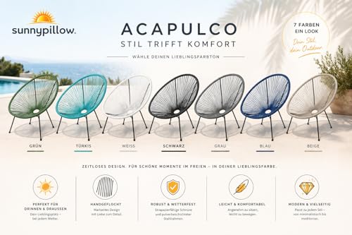 - 🏡 HOCHWERTIGE BEQUEME GARTENSESSEL MODELL ACAPULCO Ideal für den Innen – und Außenbereich! Leicht und stabil! Gewicht: ca. 5kg, Belastbarkeit: 120kg. Die Sessel bieten einen hervorragenden Ruheplatz und optimalen Komfort. Außerdem verleihen sie Ihrer Umgebung ein einzigartiges Design und passen zu jeder Einrichtung.