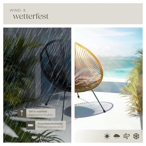 - LOUNGESESSEL OUTDOOR MIT FUNKTIONALITÄT & STIL: Erlebe den Charme des Acapulco Gartensessel, perfekt für jeden Innen- oder Außenbereich. Unser gemütlicher Sessel vereint attraktive Retro Optik mit moderner Funktionalität, um Deinem Zuhause einen Hauch von Eleganz zu verleihen. Unser runder Sessel fügt sich problemlos in Dein bereits vorhandenes Raum- oder Farbkonzept ein.