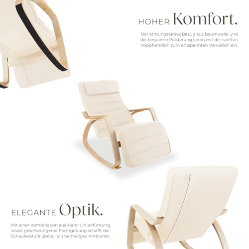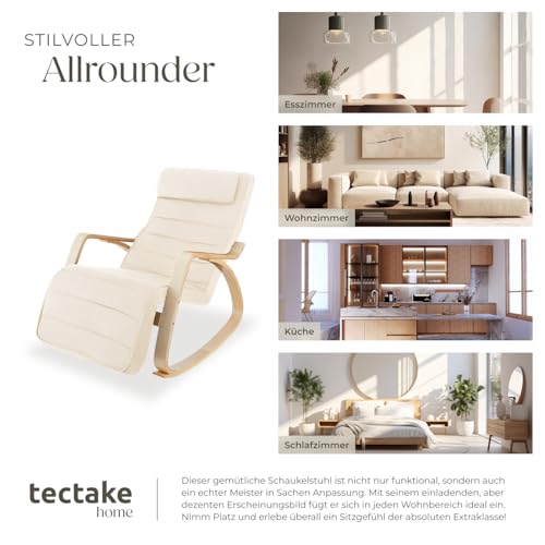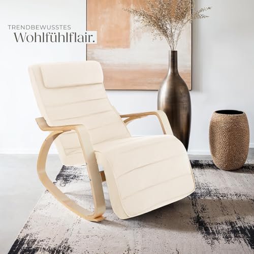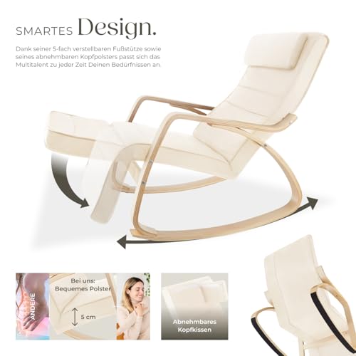 tectake® Schaukelstuhl mit Polster Auflage, Relaxsessel,Liegestuhl, Sessel für Wohnzimmer, Schaukelsessel, Stillsessel für Babyzimmer, Fernsehsessel bequem, Schaukel Liege mit Fußsstütze – beige