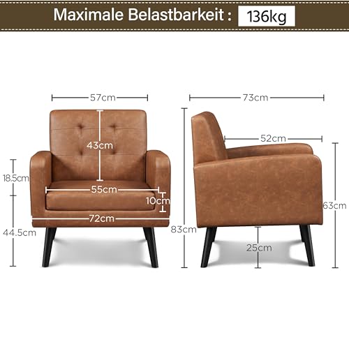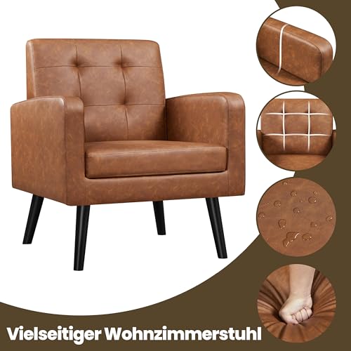 Yaheetech Ohrensessel Sessel mit Armlehnen, Bequem und Modern, Fernsehsessel Relaxsessel Wohnzimmer Clubsessel Sofa 136 KG belastbar Retro-braun