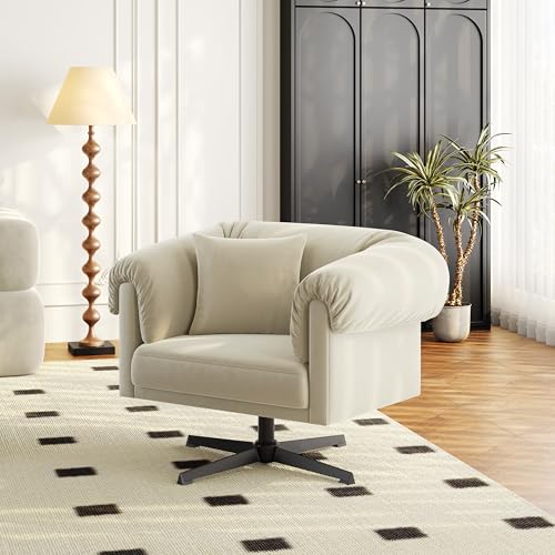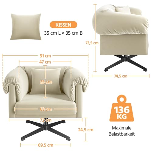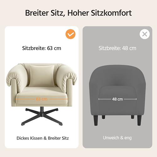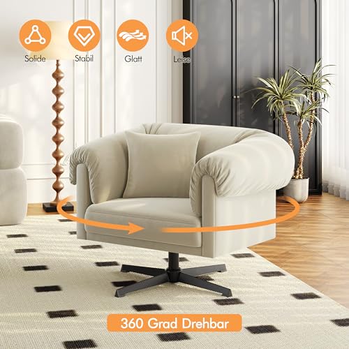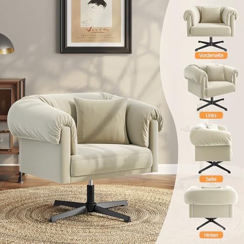 Yaheetech Sessel 360° Drehbar Loungesessel mit Rückenkissen Bequemer Relaxsessel mit Gepolsterten Armlehnen fürs Wohnzimmer/Schlafzimmer Champagner