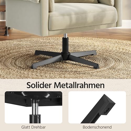 - 360° Drehbarer Sitz: Dieser Polstersessel bietet eine 360-Grad-Drehfunktion, die ihm eine Flexibilität verleiht. So können Sie sich in jede Richtung bewegen und leicht ein- sowie aussteigen