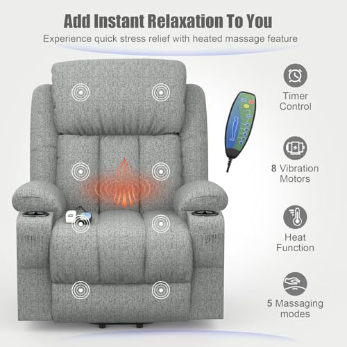 YONISEE Fernsehsessel Massagesessel Elektrisch Relaxsessel mit Liegefunktion Aufstehhilfe, Massage Heizung, Fußteil, Getränkehalter 4 Seitentaschen,TYP C & USB-Anschlüsse Liegen TV Sessel Wohnzimmer