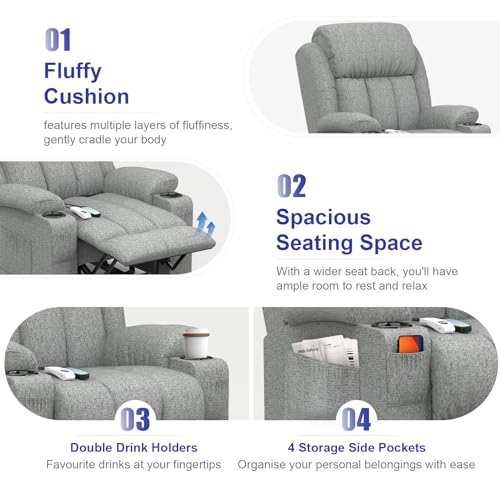 • Reichlich Aufbewahrungsmöglichkeiten: Bewahren Sie Ihre Lieblingssnacks und -getränke mit den vier Aufbewahrungstaschen und zwei Getränkehaltern griffbereit auf. Außerdem die Fernbedienung mit USB- und Typ-C-Anschlüssen sorgt dafür, dass Ihr Telefon und andere Geräte immer voll aufgeladen sind