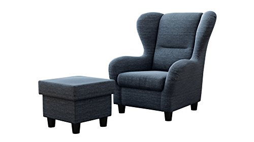 Ohrensessel Möbelfreude® Landhausstil mit Hocker „Savana“ Blau